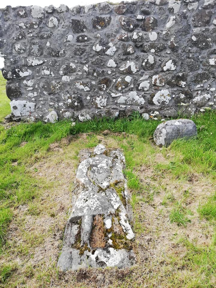 他にもDuntulm城の持ち主だったマクドナルド氏族の医師マクリーン博士の墓や、同じくマクドナルド氏族のバグパイパー、チャールズ・マッカーサーの墓。そして礼拝堂跡の石壁の後ろにはデンマークの姫との間に七人の息子をもうけ、どんな天候でも海へ出ていくので『風のアンガス』と呼ばれたアンガス・マーティンの墓もあります。