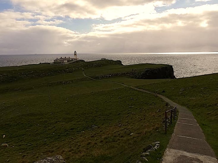 島の西端の海沿いに建つ美しいネイスト灯台と崖からの絶景は行って見てみる価値ありですが、2.2キロの時々急になる坂道を下っていくのでお天気には要注意。