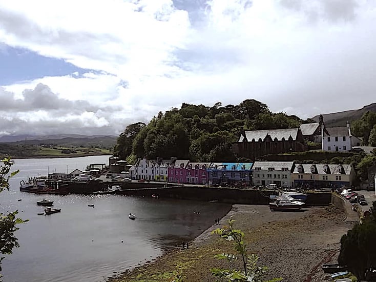島最大の集落、ポートリー。カラフルな家が立ち並ぶ港にはおしゃれなカフェやレストランが軒を連ねているので、天気の良い日は地元の人や観光客が大勢テラス席に座って飲食を楽しんでいます。