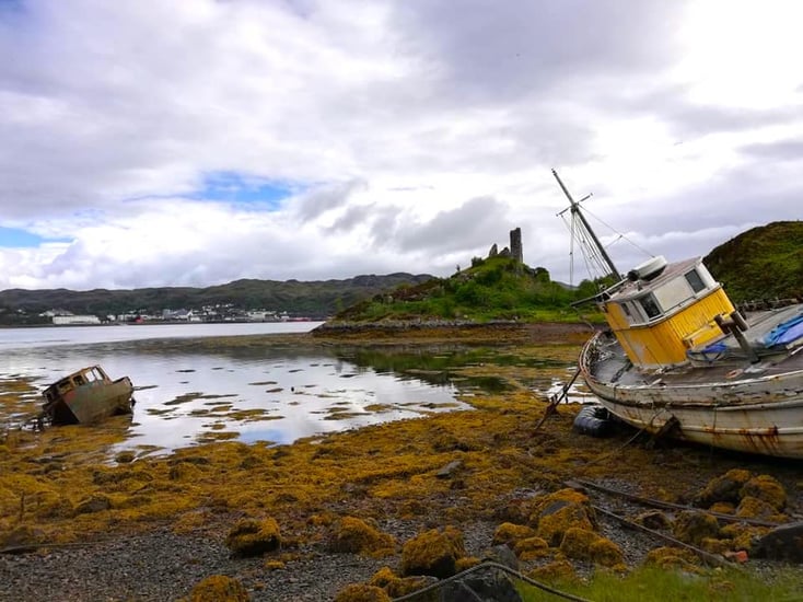 橋を渡ってすぐのカイリーキンにあるモイル城。15世紀に建てられた3階建のタワーハウスはマッキノン氏族の持ち物でしたが、17世紀以降は使用されなくなり現在は廃墟となっています。